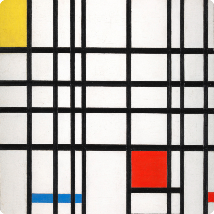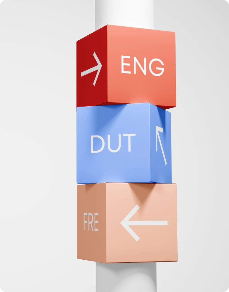В поиске вдохновения мы обратились к эстетике Баухауса и работам Пита Мондриана. Четкость линий, геометричность форм и смелые цветовые сочетания этих направлений помогли нам передать идею открытого, динамичного пространства, где пересекаются разные культуры и языки.