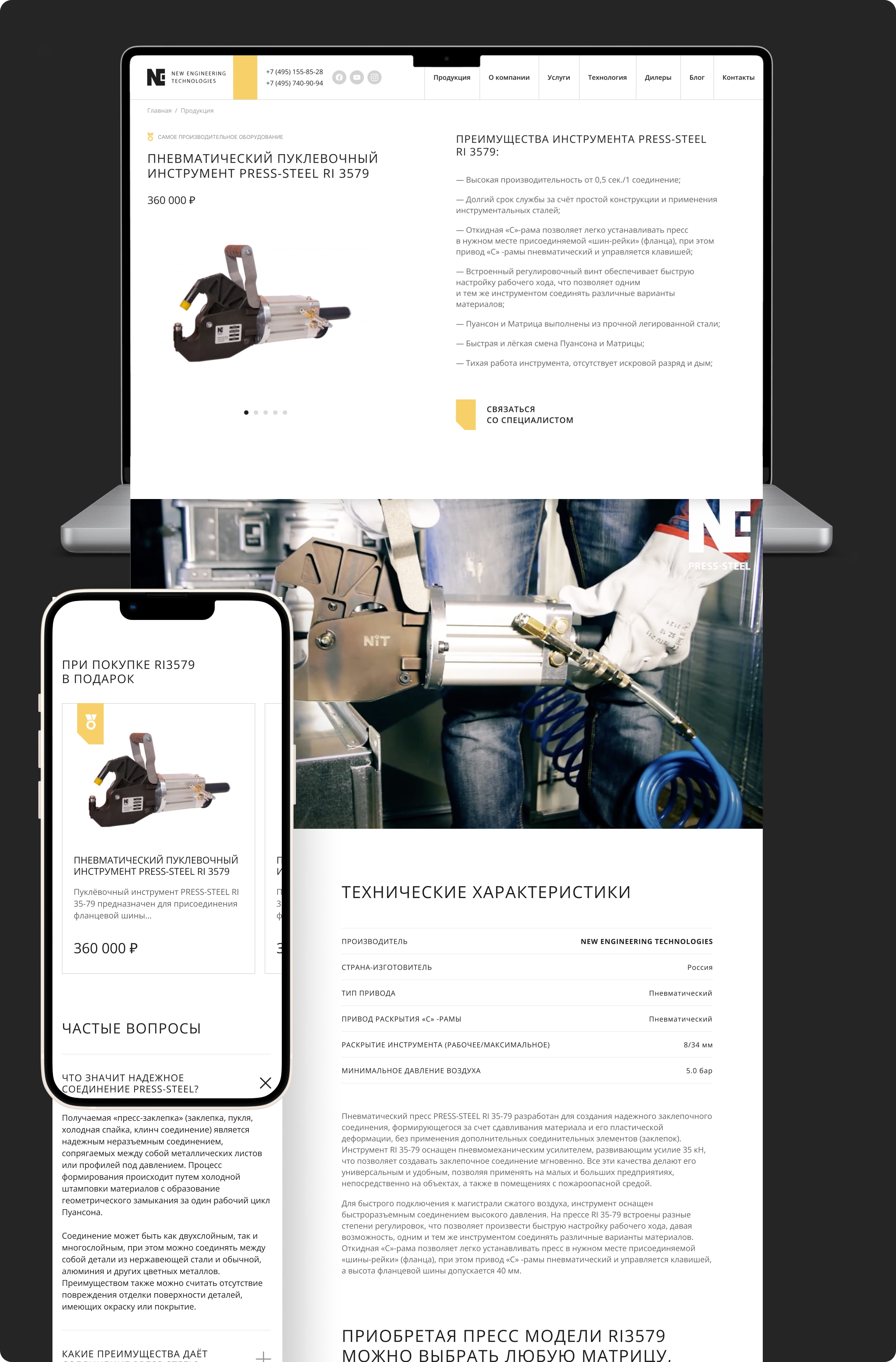 «New engineering technologies» разрабатывают современное клинчинговое оборудование для соединения конструкций из металла. Собственные изобретения позволили «NET» оставить далеко позади своих конкурентов, не только по техническим характеристикам, но и по качеству инструмента. Вот для такой передовой компании мы разработали корпоративный сайт.