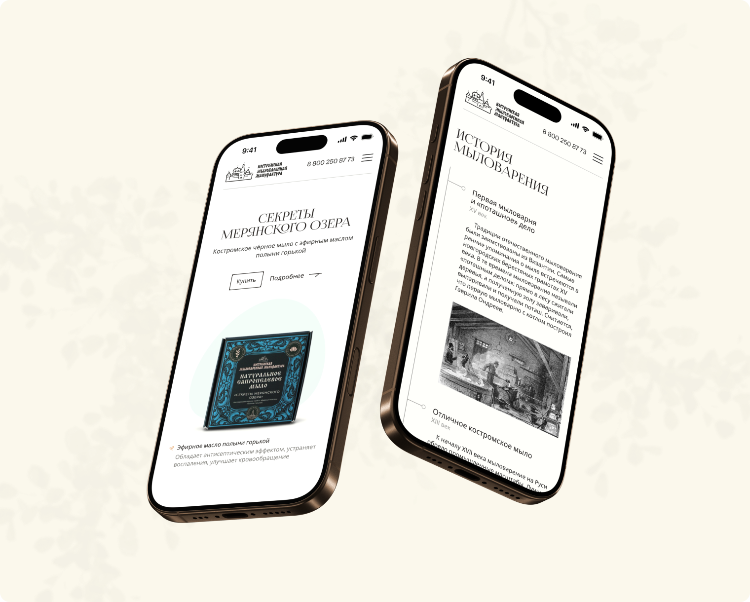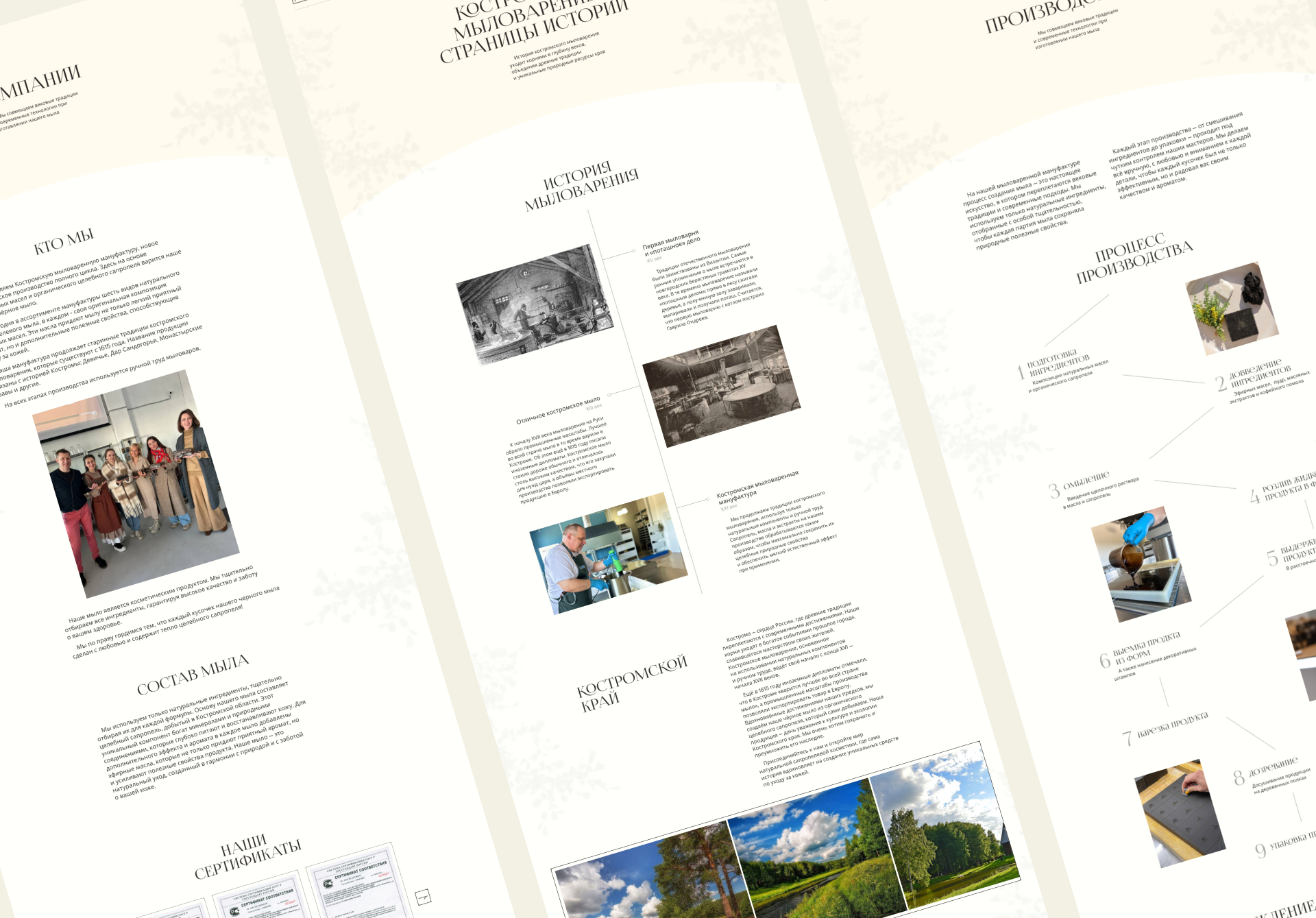 Мы разработали сайт для Костромской мыловаренной мануфактуры, которая создает уникальное натуральное мыло из сапропеля. Этот проект объединил глубокую историю мыловарения, ремесленные традиции и современные технологии.