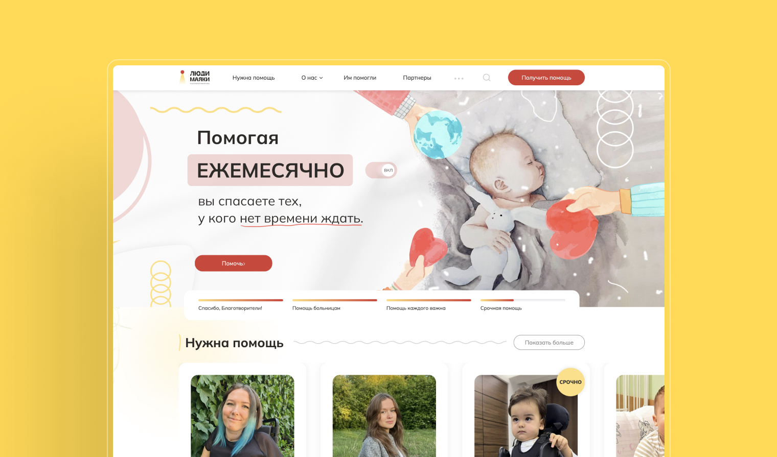 1. Красный цвет ассоциируется с энергией, силой, активностью. Он привлекает внимание, создает ощущение важности и срочности. Это помогает мотивировать людей на действия. К сожалению, многие подопечные фонда просто не могут ждать.