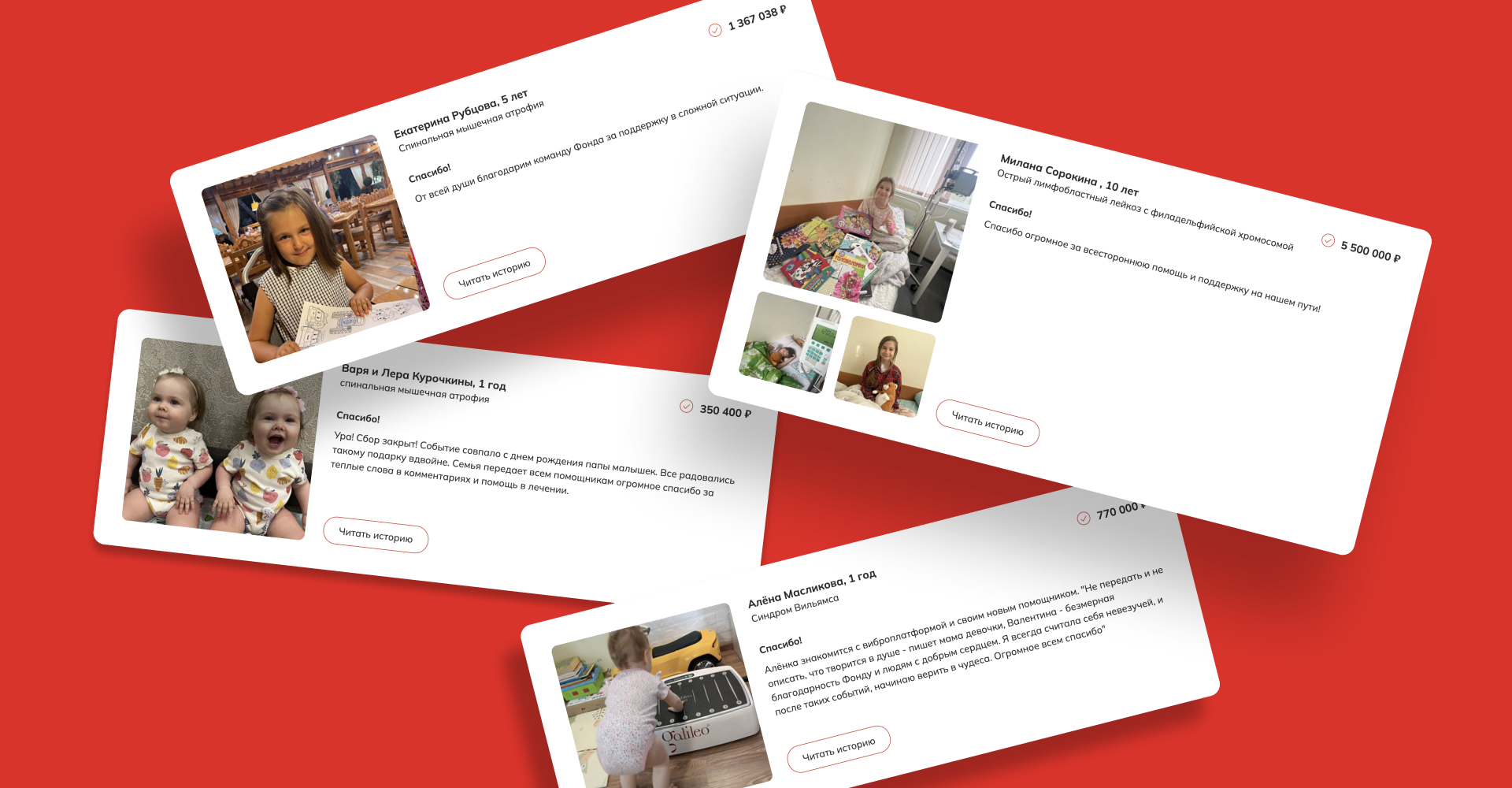 Благодаря репутации фонда и визуальной узнаваемости, созданной и правильно сформулированной айдентики командой «Artway» за 2 года работы фонда было собрано более 280 000 000 рублей и спасено более 100 детских жизней.