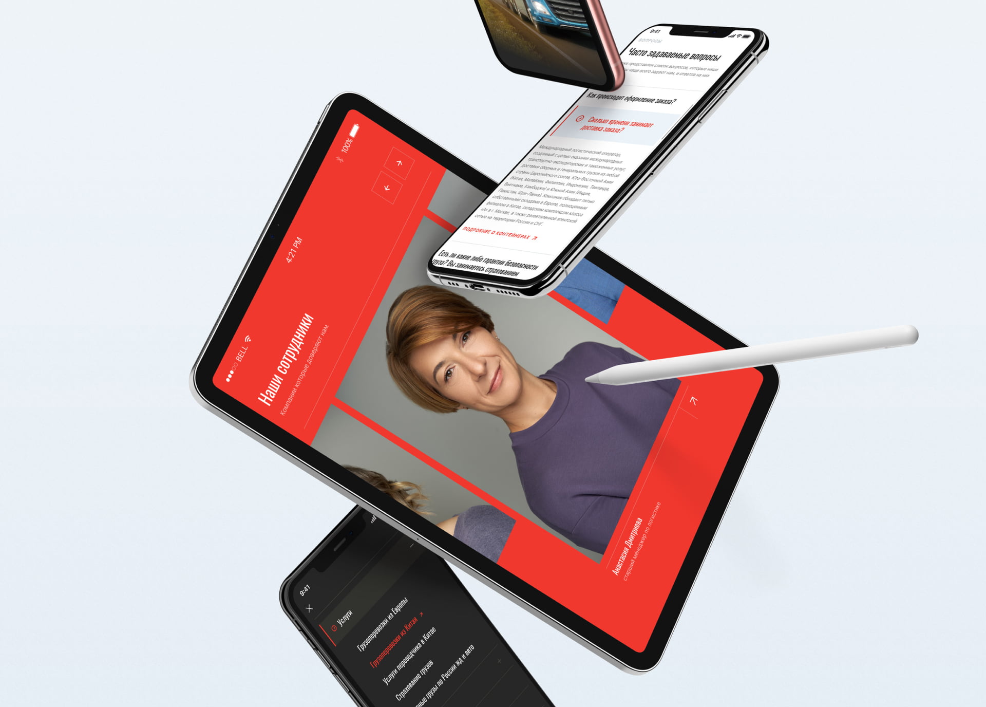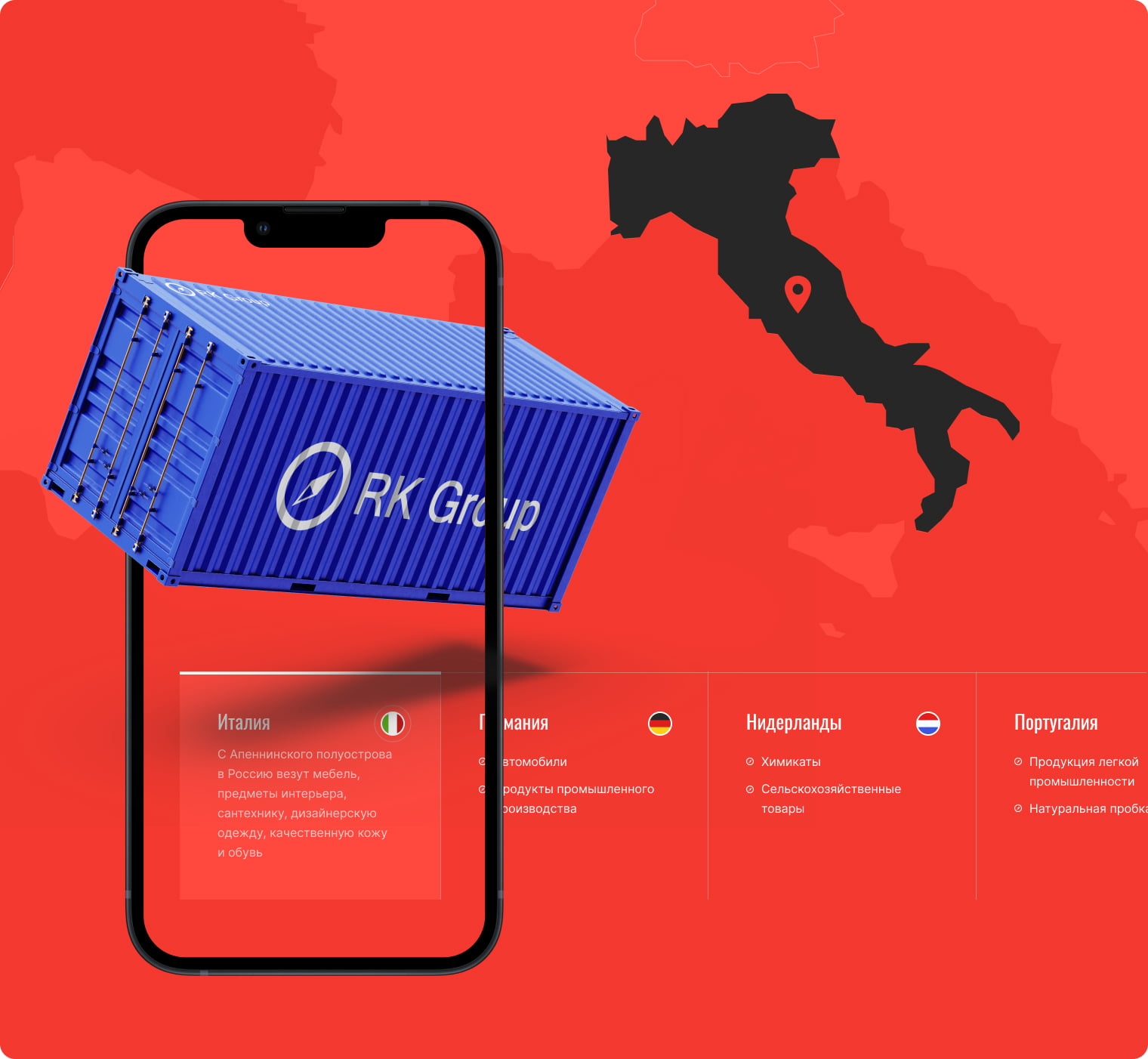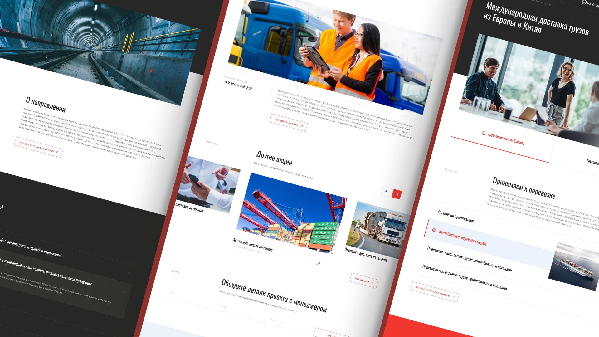 Острые прямоугольные формы, используемые на сайте, ассоциируются у клиентов с контейнерами и механизмами, передают пунктуальность и профессионализм компании.
