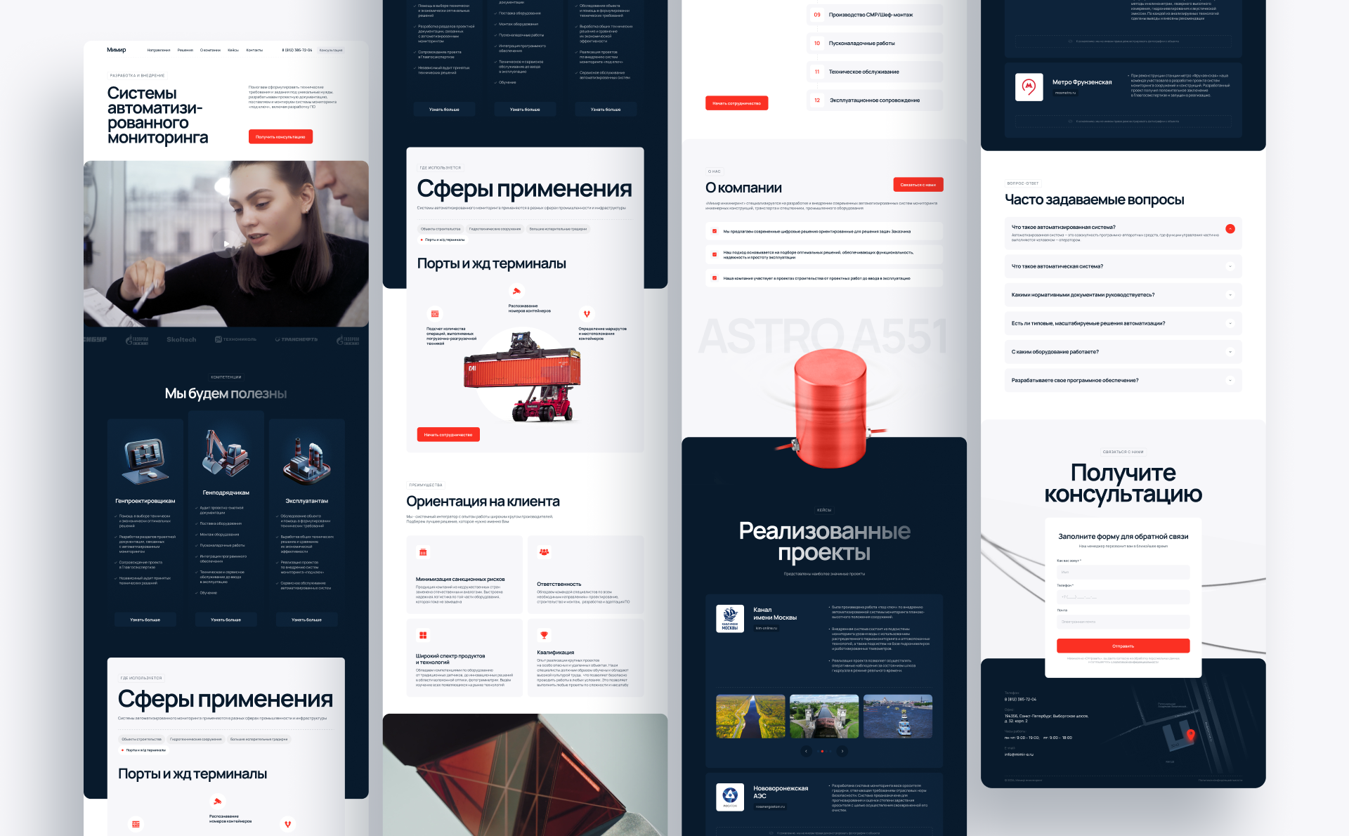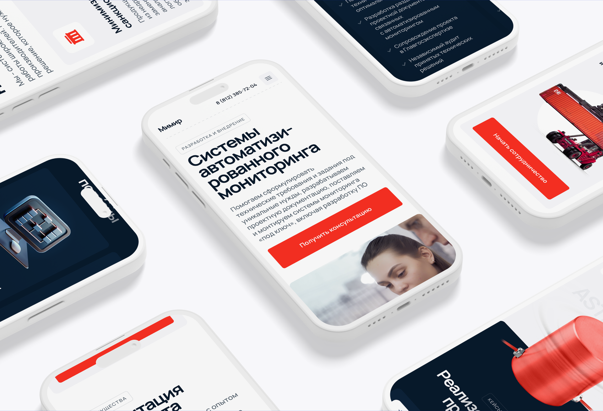 Компания «Мимир Инжиниринг» специализируется на создании и внедрении автоматизированных систем мониторинга зданий, сооружений, транспорта и спецтехники. На основном сайте компании, данное направление затерялось среди других услуг, и не содержало всей актуальной информации. Компания выросла, обзавелась внушительными кейсами успешного сотрудничества с именитыми клиентами. Функционал основного сайта не позволял полноценно рассказать о новых достижениях, поэтому нами было принято решение создать новый сайт на конструкторе Тильда.