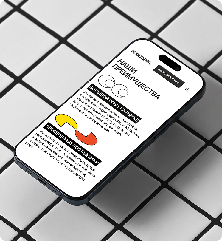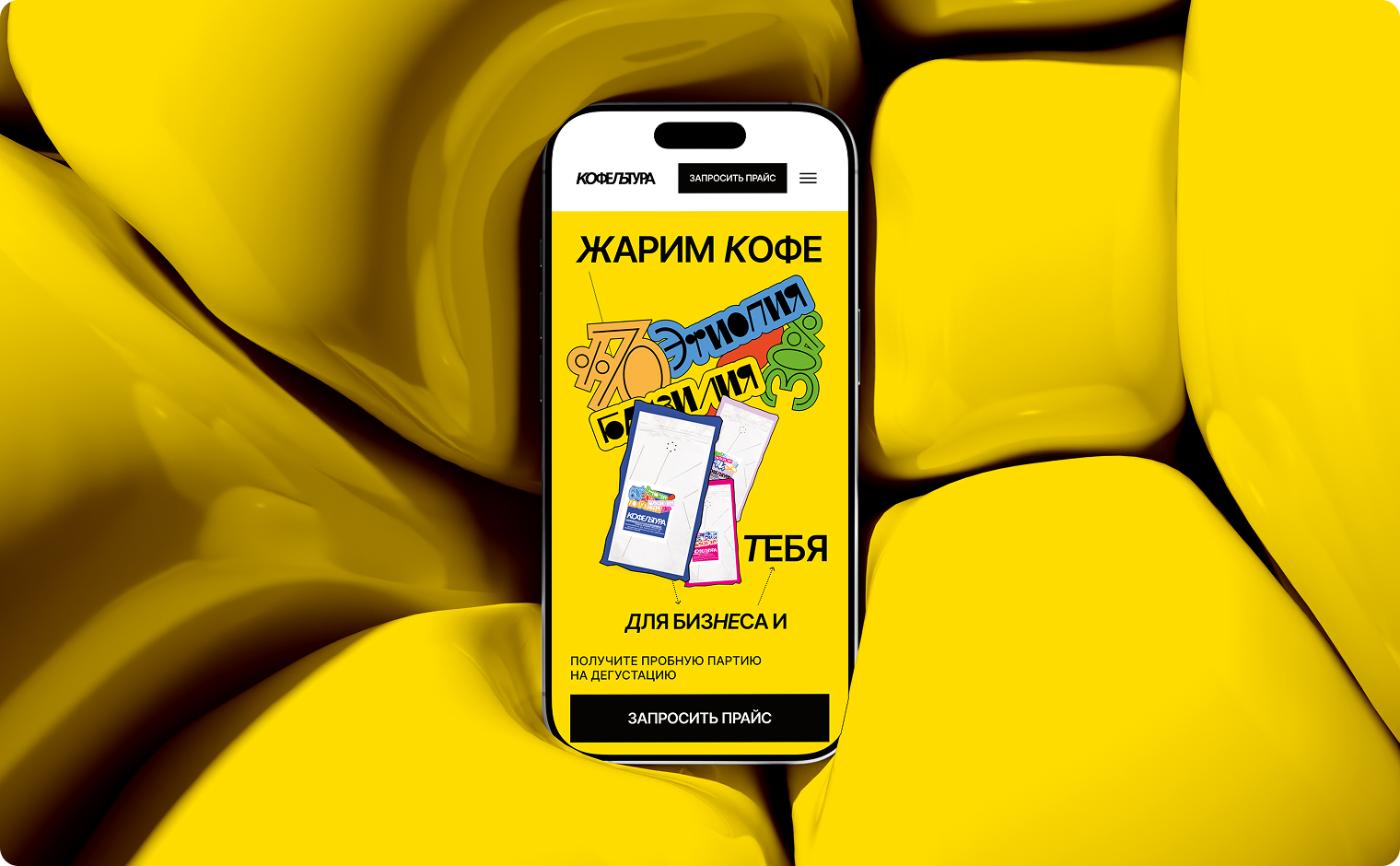 В итоге получился сайт, который не просто рассказывает о кофе, а передаёт характер бренда Кофельтуры, объединяет сообщество обжарщиков, бариста и ценителей, делает процесс покупки и сотрудничества лёгким и приятным, а визуальный язык — ярким, современным и эмоциональным.