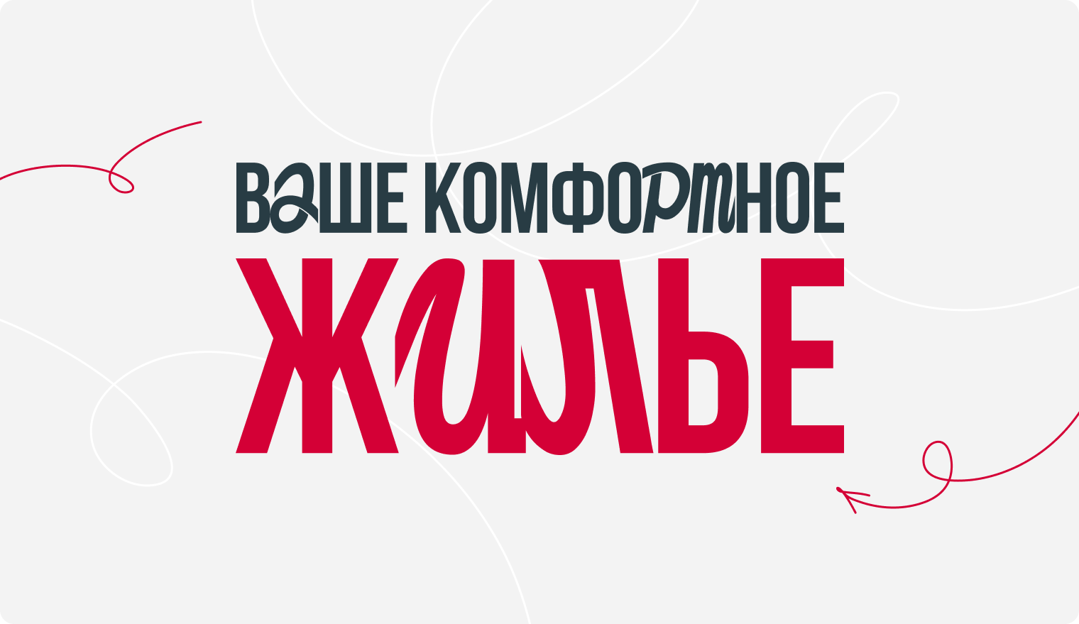 Декоративный шрифт подсказал нам новый визуальный элемент сайта. Игривая «закарючка» необычной формы прекрасно вписалась в дизайн в качестве фонового элемента. От неё же и пошло развитие рукописных стрелочек. Окончательно строгость разбавили летающие предметы интерьера, символизирующие домашний уют.