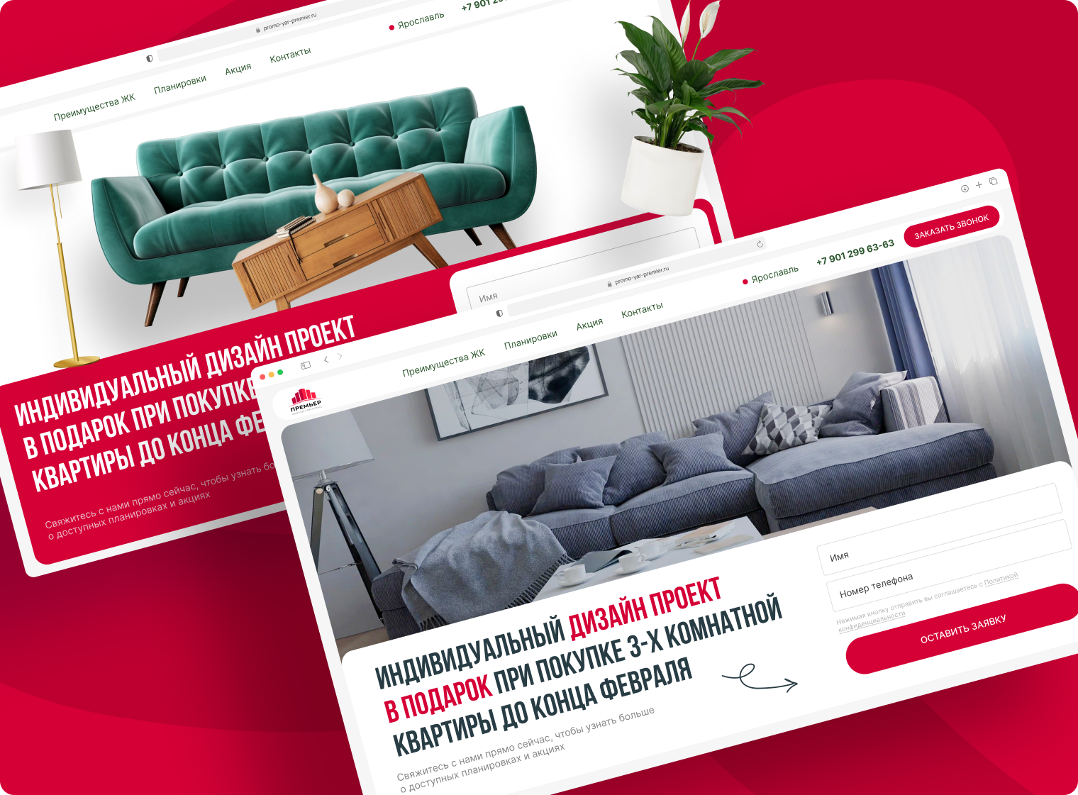 ЖК «Премьер» — современный жилищный комплекс, расположенный вблизи главных транспортных артерий Ярославля. Сочетая в себе удобное месторасположение, развитую инфраструктуру и тихую обстановку, комплекс стал очень популярным среди потенциальных покупателей квартир. Все квартиры активно продавались, но был недостаточный спрос на 3-х комнатные квартиры. Поэтому к нам поступила задача от застройщика ЖК «Премьер»: создать лендинг для продажи 3х-комнатных квартир комплекса, с последующим запуском на него контекстной рекламы.